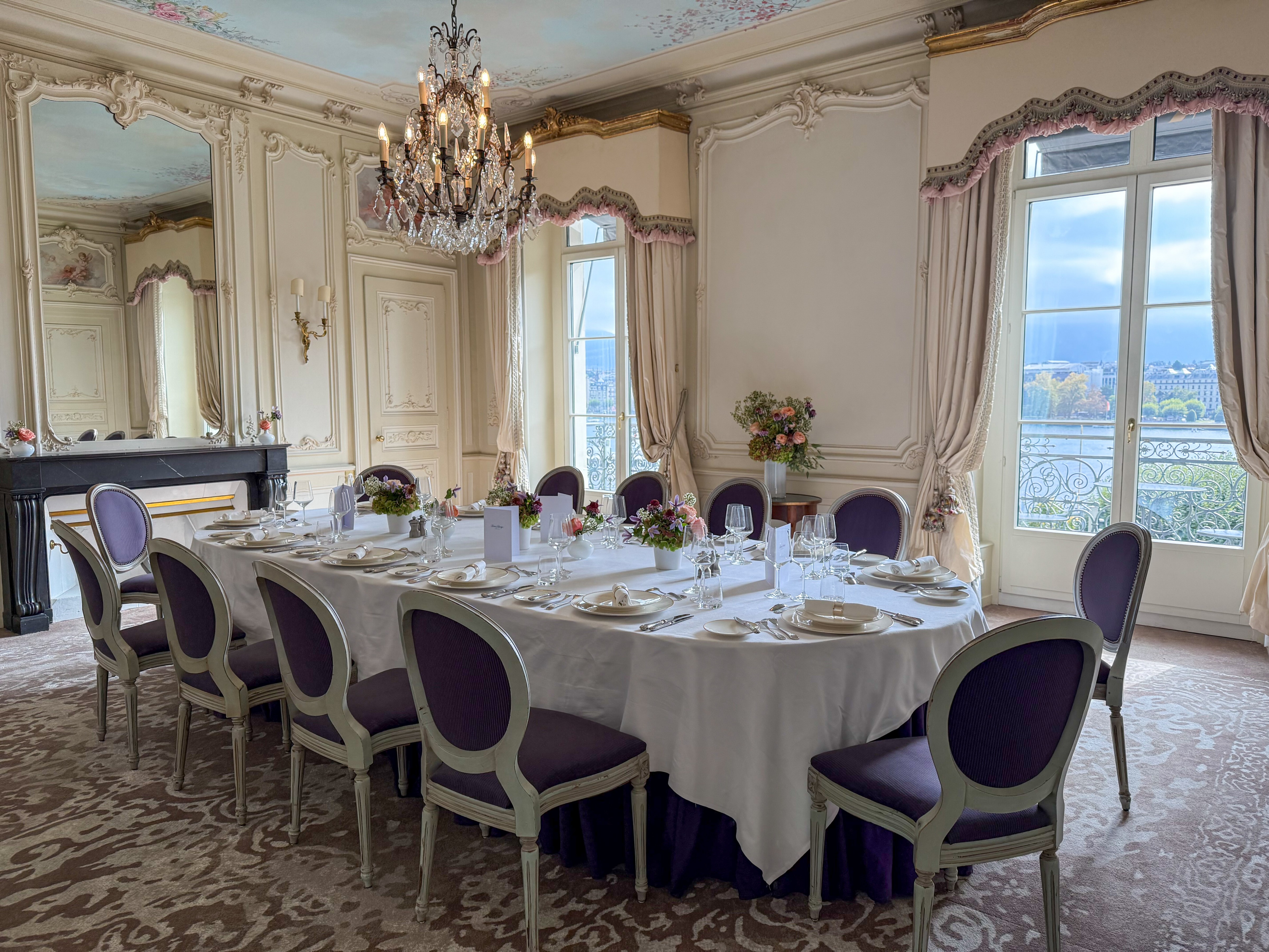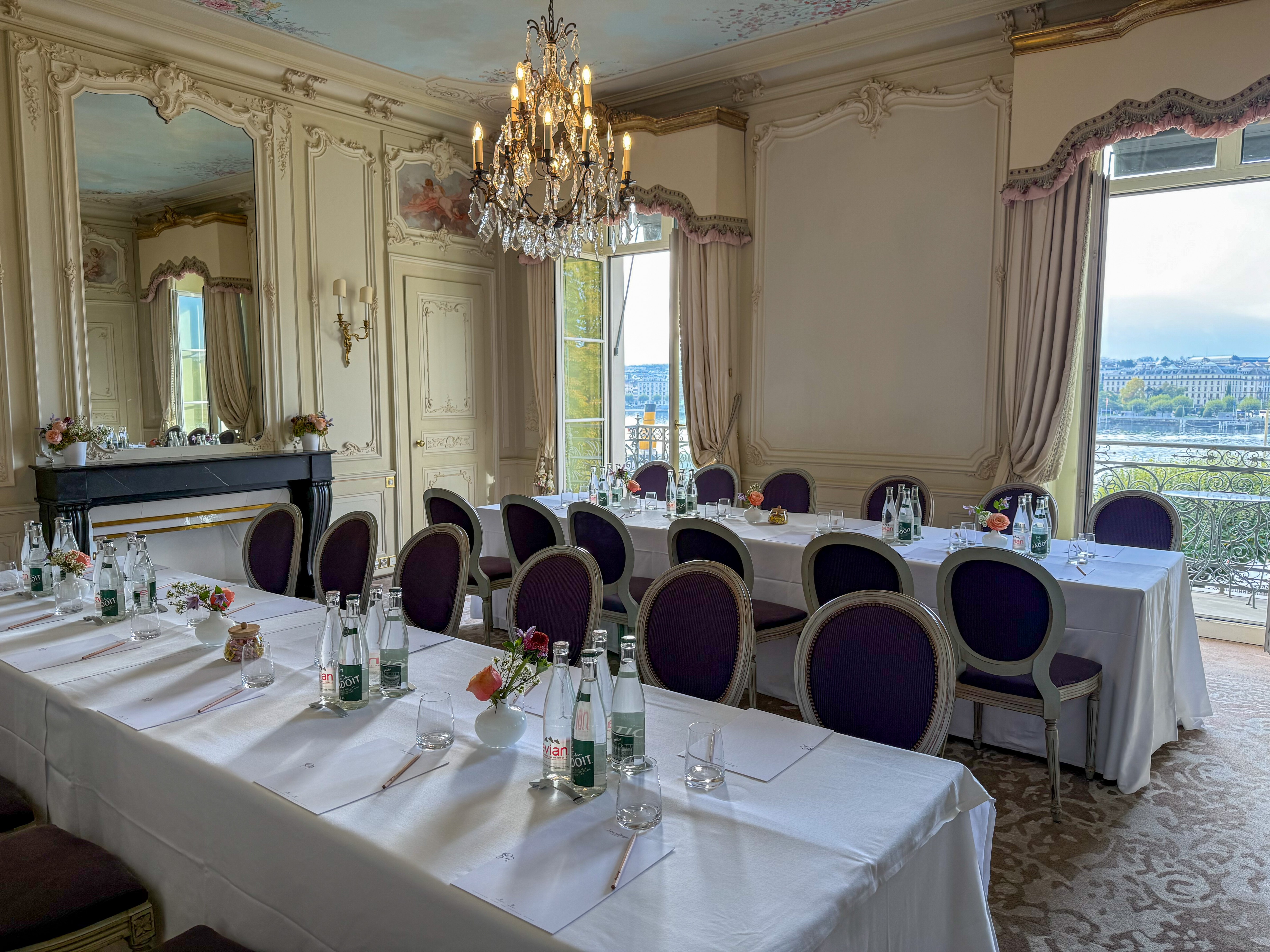 Offrez à vos événements un cadre d’exception : Nos suites prestigieuses, chacune dotée d’une décoration unique et d’un caractère singulier, sont disponibles à la location pour des réceptions exclusives inoubliables. Entre raffinement, service impeccable et attention sur mesure, chaque instant devient une expérience d’exception au cœur de Genève.