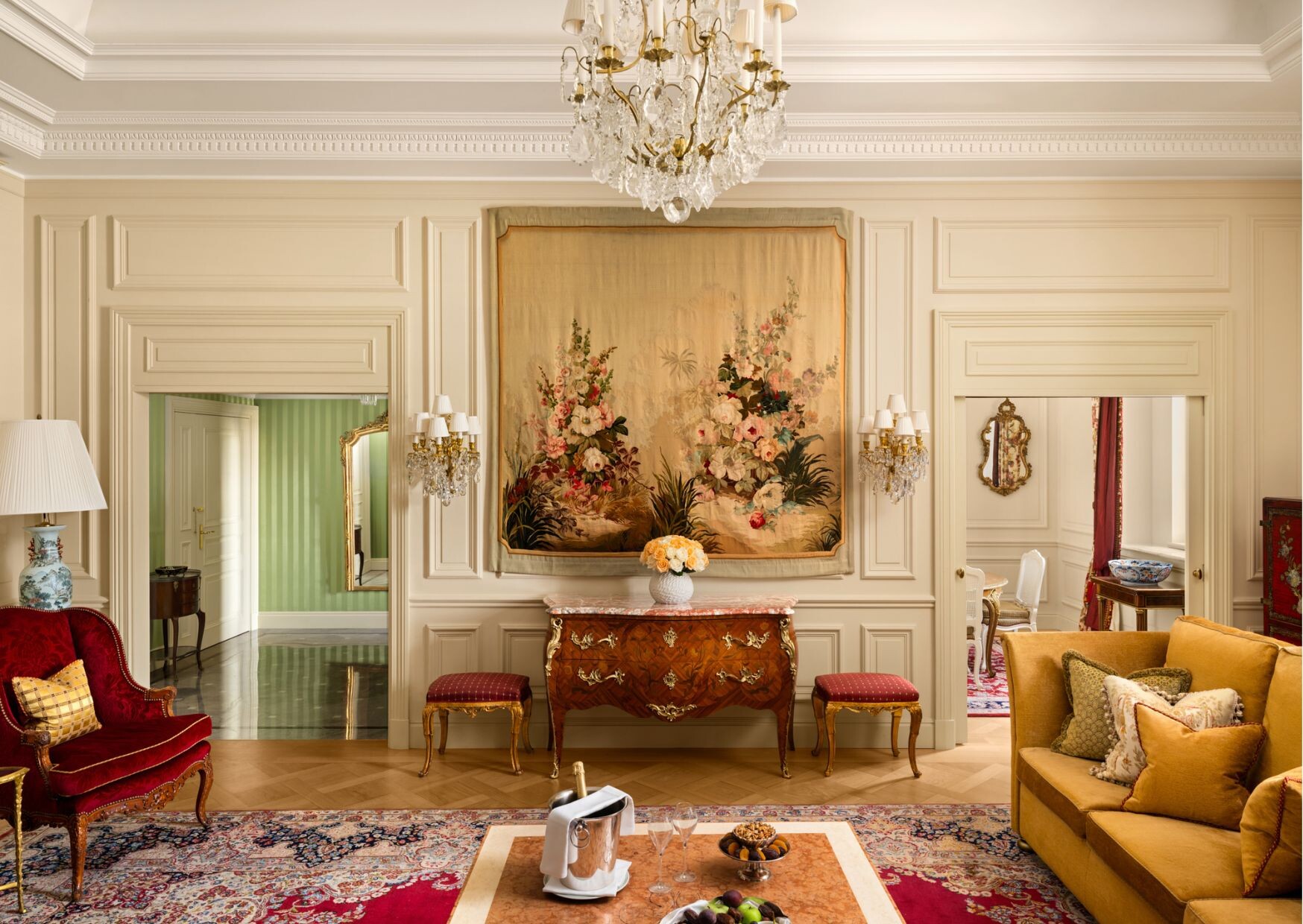 Plongez dans l'univers raffiné de la Suite Eleanor Roosevelt, s’étendant sur 190 mètres carrés. Ornée de chefs-d'œuvre artistiques, elle allie harmonieusement confort moderne et élégance intemporelle. Avec son agencement généreux, sa salle de bains spa entièrement équipée et ses deux chambres offrant un confort absolu, cette suite incarne le luxe à l’état pur.